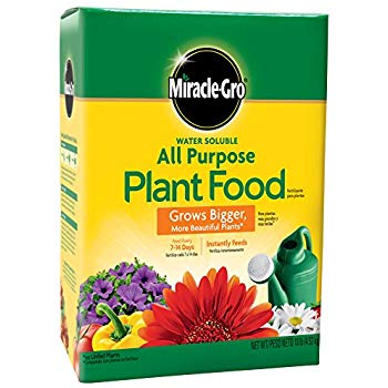 Miracle-Gro Water Soluble All Purpose Plant Food instantly feeds vegetables, trees, shrubs, and houseplants to grow bigger and more beautiful than unfed plants. Simply feed them every 1-2 weeks. The formula is safe for all plants, and is guaranteed not to burn when used as directed. Get beautiful results with Miracle-Gro.